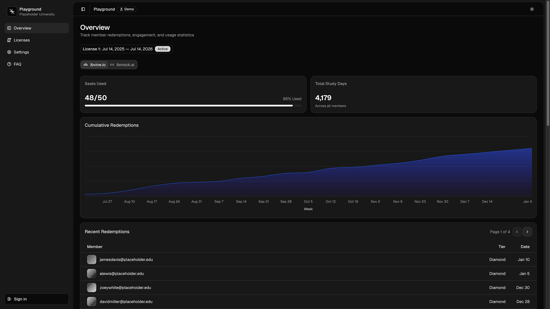 Access to student usage analytics. Manage licenses, track redemptions, and monitor engagement—all from one dashboard.